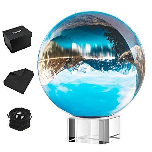 Entscheiden Sie sich für ein Modell mit transparentem Ständer aus Glas, wenn der Ständer Teil des Fotomotivs werden soll. Sollte Ihre Kristallkugel ohne Ständer geliefert werden, können Sie sich mit etwas Einfallsreichtum auch selbst einen Ständer bauen. Ein Ehering eignet sich beispielsweise hervorragend als Lensball-Stand.