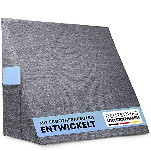 Ein Keilkissen ist wie ein Dreieck geformt, sodass Sie es gewöhnlich sowohl horizontal zum Liegen als auch vertikal zum Sitzen nutzen können. Da Keilkissen relativ fest sind, ist die Stützfunktion bei diesen Lesepolstern besonders gut.