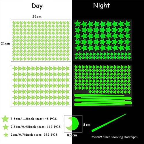 Tipp: Große Leuchtsterne fürs Kinderzimmer wirken im Vergleich oft heller als kleinere. Die meisten Hersteller liefern die Sticker in einem Set aus verschiedenen Größen, oft ergänzt um Leuchtpunkte oder einen Mond. Kombinieren Sie die verschiedenen Aufkleber geschickt, um ein täuschend echtes Himmelszelt zu gestalten.