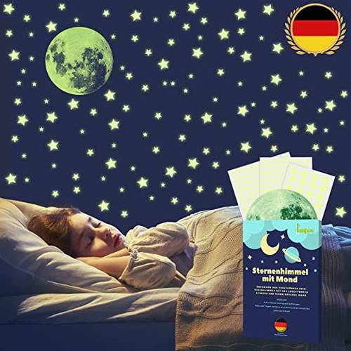 Wie hell sollen die Leuchtsticker für die Wand im Kinderzimmer leuchten? Diese Frage ist entscheidend, wenn Sie Leuchtsterne fürs Kinderzimmer kaufen. Diversen Online-Tests zufolge verfügen Leuchtsterne fürs Kinderzimmer in der Regel über eine mittlere Leuchtfähigkeit. Es gibt auch Leuchtsterne fürs Kinderzimmer mit extrastarker Strahlkraft. Wichtig ist vor allem, dass die fluoreszierende Wirkung nicht zu schwach ist, sonst verpufft der erhoffte Leuchteffekt.