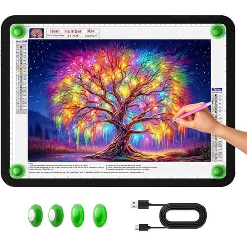 Das LED-Licht Pad A3 ist ein ultradünner Leuchttisch, der sich für verschiedene Anwendungen wie Diamond Painting, Zeichnen und Skizzieren eignet. Mit seiner Type-C Schnittstelle und dem mitgelieferten USB-Kabel ist es einfach zu bedienen und flexibel einsetzbar. Die einstellbare Helligkeit und Farbtemperatur ermöglichen eine individuelle Anpassung an die jeweiligen Bedürfnisse. Besonders praktisch ist die integrierte Timing-Funktion, die das Gerät automatisch nach einer bestimmten Zeit ausschaltet. Insgesamt bietet das LED-Licht Pad A3 eine hervorragende Qualität und einfache Handhabung für kreative Aktivitäten.