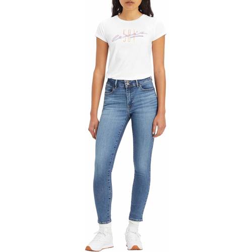 Levis-Damen-Jeans mit einem hohen Stretchgehalt betonen die Körperform, während sich Hosen mit einem steiferen Stoff weniger an den Körper anpassen.