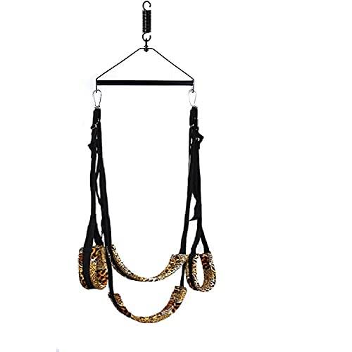 Liebesschaukel-Gestell | Ein Liebesschaukel-Gestell benötigt von allen vier Typen den meisten Platz. Dafür verteilt sich daran das Körpergewicht der Teilnehmenden gut und es sind allerhand Sexstellungen an dieser „Loveswing“ möglich. Durch die günstige Gewichtsverteilung besteht zudem eher wenig Gefahr, durch Riemen und Halterungen Abdrücke zu bekommen. |