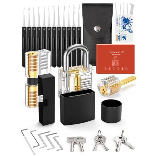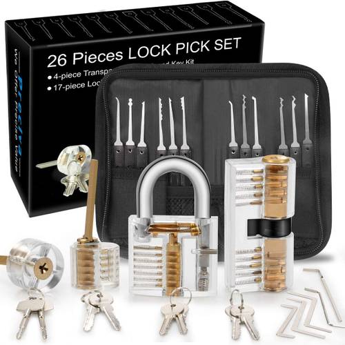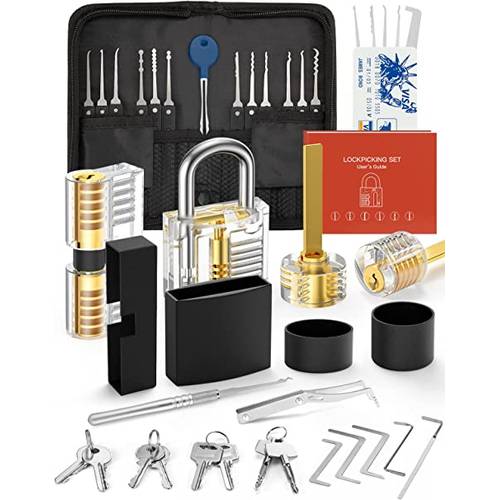 Bei vielen Lockpicking-Sets für Anfänger ist neben den Schloss-Knack-Werkzeugen auch ein sogenanntes Übungsschloss enthalten. Meist handelt es sich dabei um ein transparentes Schloss aus Kunststoff. Dies hat den Vorteil, dass Sie als Anfänger die Funktionsweise eines Zylinderschlosses – und die technischen Abläufe beim Öffnen – auch sehen können.