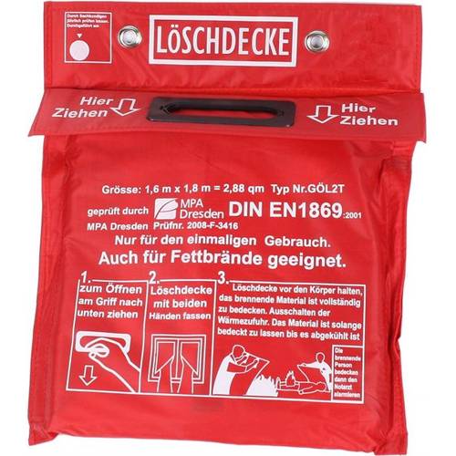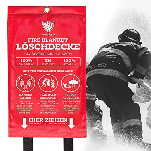 Es empfiehlt sich zumindest eine Löschdecke mit Maßen von 1×1 Metern. Damit können Sie eine Gesamtfläche von einem Quadratmeter abdecken. Das ist ideal, um beispielsweise die Herdplatte oder einen brennenden Adventkranz zu ersticken. Besser ist jedoch auch im Haushalt eine Löschdecke von mindestens 1,5 Quadratmetern geeignet.