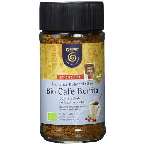 Platz 1 | Gepa Bio-Café Benita entkoffeiniert Instant | ca. 9 € | Vorratsglas | ![]() ![]() | ||