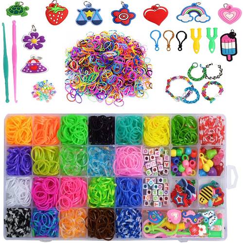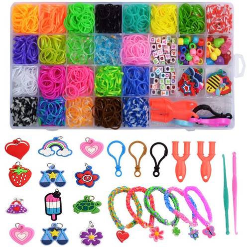 Wie wir herausfinden, werden oft auch ganze Loom-Bänder-Sets angeboten, die neben verschiedenen Farben auch Zubehör für verschiedene Basteleien und eine Anleitung enthalten.