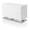 Das Gerät besteht überwiegend aus glänzendem, weißem Kunststoff. An den Seiten sitzen silberfarbene Applikationen. Die Verarbeitung ist insgesamt in Ordnung, es gibt keine scharfen Kanten oder schlecht sitzende Teile. Das Material wirkt dabei eher zweckmäßig als edel. Das Gehäuse ist sehr kantig aufgebaut und verzichtet auf weiche Linien oder moderne Rundungen. Das vorn angebrachte Bedienfeld verstärkt diesen Eindruck zusätzlich. Es wirkt optisch eher altmodisch.