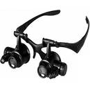 Lupenbrille mit breiter Linse![]() | Manche Lupenbrillen verfügen nur über ein einziges Glas anstelle zweier Linsen. Das hat den Vorteil, dass mit zwei geöffneten Augen gearbeitet werden kann und das Bild dreidimensional bleibt. In der Regel kann ein zweites Glas hinzugefügt werden, um die Vergrößerung noch zu steigern. |
