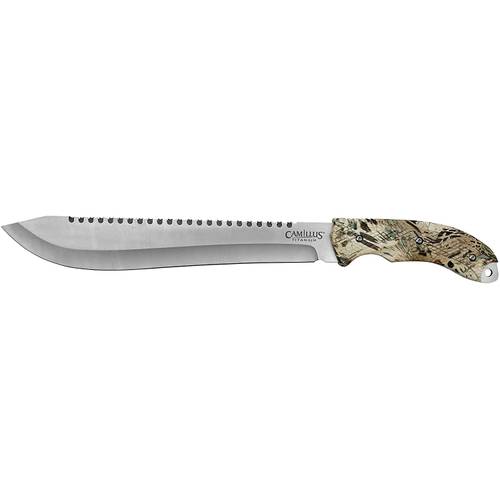 Tests von Macheten im Internet bestätigen, dass ein Sägerücken dabei hilft, Holz zu durchtrennen. Es ist zwar nicht so effizient wie eine richtige Handsäge, kann aber das Entfernen von schmalen Äste und besonders widerstandsfähigem Gewächs vereinfachen.
