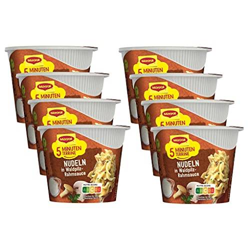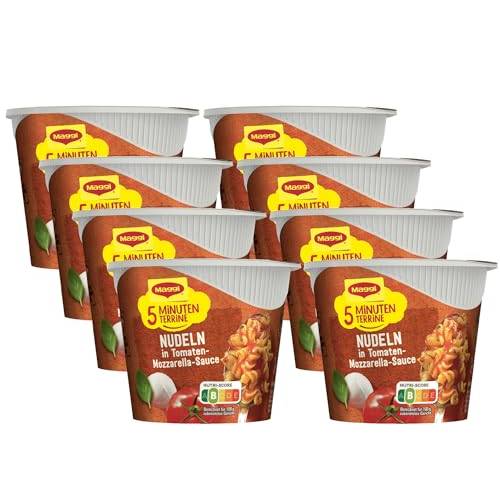Natürlich gibt es auch Maggi-5-Minuten-Terrinen-Sorten, die Fleisch enthalten, wie der ungarische Gulaschtopf, die klassische 5-Minuten-Terrine mit Bolognese und einige Sorten mit Kartoffelbrei. Doch nicht nur in den Sorten, auch in Sachen Nährwerte pro 100 Gramm sowie dem Nutri-Score unterscheiden sich die Terrinen. Zudem gibt es die 5-Minuten-Terrinen von Maggi mit oder ohne Gluten bzw. Milcherzeugnissen.