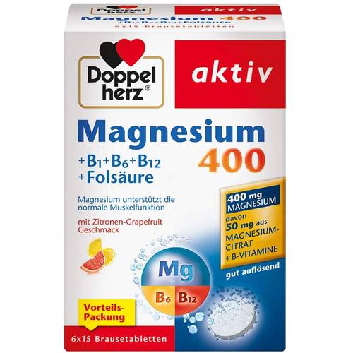 Modell | Doppelherz Magnesium 400 Brausetabletten | Doppelherz aktiv Magnesium 400 + B1 + B6 + B12 + Folsäure | Biolectra Magnesium fortissimum Orange | Verla Pharm Magnesium Verla Brausetabletten | Kneipp Magnesium + B + C + E | Doppelherz Magnesium 500 | Verla Pharm Magnesiocard | Verla Pharm Magnesium plus Granulat Grapefruit |