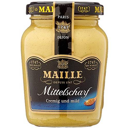 Maille-Dijon-Senf „Original“ und Maille-Dijon-Senf „mit Honig“ sind die beliebtesten Senfe von Maille. Da der Begriff Dijon-Senf rechtlich geschützt ist, muss sich Maille an die Vorgaben zur Herstellung halten, damit der beste Maille-Senf überhaupt diesen Namen tragen darf. Besonders beliebt sind auch Maille-Dijon-Senf-Rezepte, die in diversen Tests zu Maille-Senf im Internet emsig getauscht werden.