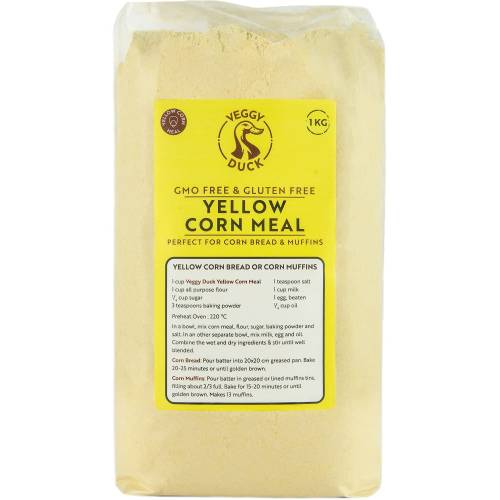 Laut Beschreibung auf der Packung eignet sich das Küchenmeister-Maismehl für Rührkuchen, Kekse, Muffins, Waffeln, Aufläufe, Tortillias, Pfannkuchen sowie zum Andicken von Soßen.