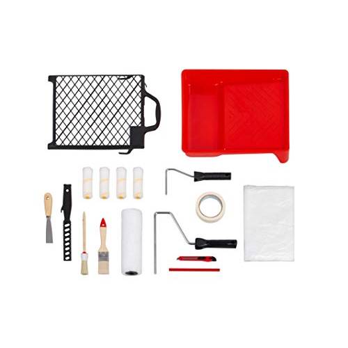 In diese Situation geraten Sie nicht, wenn Sie schon im Vorfeld ein mehrteiliges Maler-Set kaufen. Neben den klassischen Streichutensilien enthält dieses – je nach Umfang – zumeist Farbwalzen und Pinsel in unterschiedlichen Ausführungen sowie eine Teleskopstange, Farbwannen, Abstreifgitter und idealerweise Abdeckfolie.