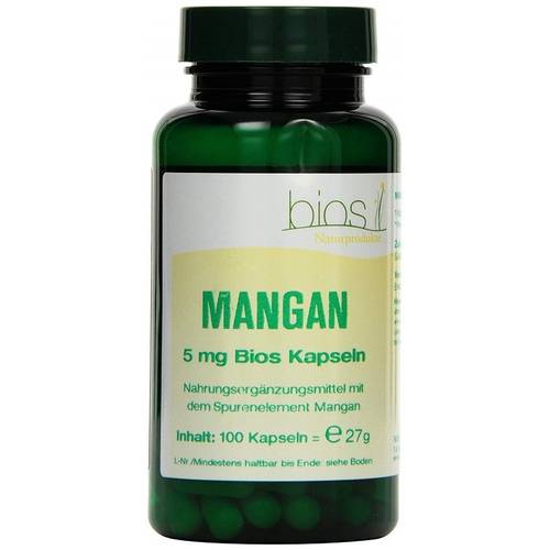 Platz 5 | Bios Mangan-Kapseln | ca. 21 € | 1 Kapsel 0,21 € pro Portion | 5 mg Mangangluconat |