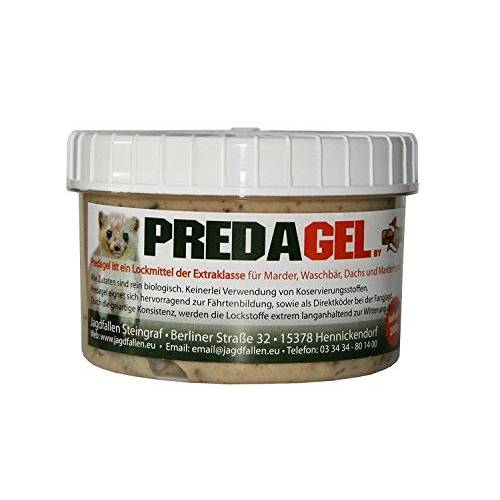 Zusätzlich zu den Ölen bietet auch das Predagel-Lockmittel von Jagdfallen Steingraf einen Vorteil. Durch die Gel-Konsistenz ist es klebrig und behält somit auch bei Nässe am Anwendungsort eine gute Wirkung.