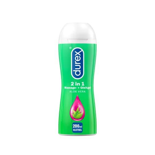 Das Durex-2-in-1-Massageöl ist eines der wenigen Produkte, das Sie gleichzeitig auch als Gleitgel und dadurch auch in Verbindung mit Kondomen und Sexspielzeug verwenden können. Zusätzlich enthält das Durex-Gel Aloe vera, was sich pflegend auf die Schleimhäute auswirken kann.