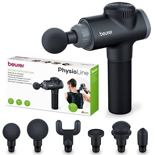 Zum Lieferumfang dieser Beurer-Massagepistole „MG 180“ gehören unseres Wissens sechs Massageaufsätze und ein Ladegerät.