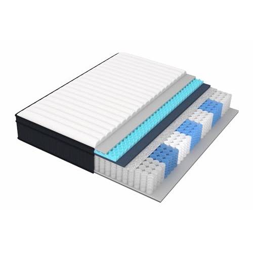 Taschenfederkernmatratze 140 x 200 cm | Auch dieser Matratzen-Typ setzt sich aus Federn, einer Vlies- oder Filz-Unterlage sowie einer Schaumstoff-Schicht zusammen. Zusätzlich sind die Federn in kleinen Packen in Stofftaschen zusammengenäht, um die Elastizität der Matratze zu steigern. | sehr gute Punktelastizität luftdurchlässig sehr robust und langlebig recht kühl Kuhlen-Bildung möglich |