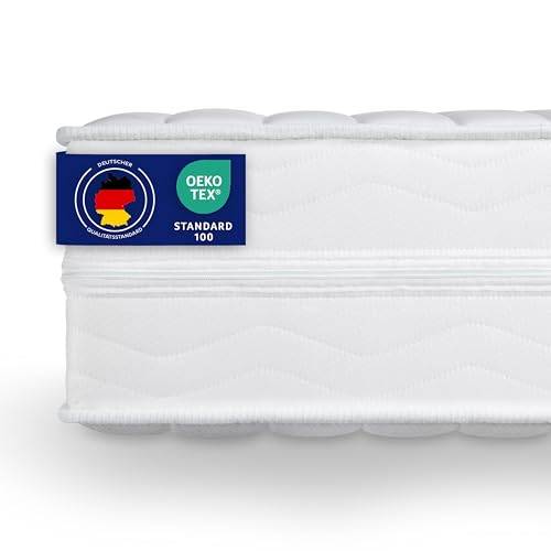 Federkernmatratze 140 x 200 cm | Der innere Kern dieser Matratzen mit 140 x 200 cm Umfang ist mit einer unterschiedlichen Anzahl Stahlfedern ausstaffiert. Damit diese nicht spürbar sind, werden sie zuerst mit einer Schicht Filz oder Vlies überzogen und anschließend mit einer Lage Schaumstoff. | luftdurchlässig sehr robust und langlebig keine Punktelastitzität Federn manchmal spürbar |