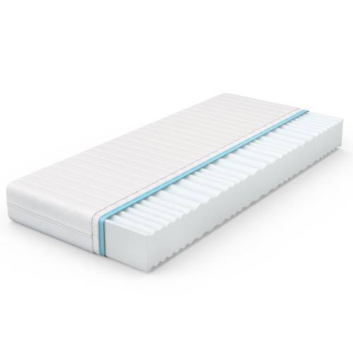 Kaltschaummatratze 140 x 200 cm | Der Kern einer solchen Matratze ist mit einem speziellen Schaumstoff gefüllt, der in der Herstellung nicht mehr gehärtet und somit „kalt“ verarbeitet wird. In großen Blöcken wird dieser Schaumstoff für z.B. eine Visco-Matratze in 140 x 200 cm zurechtgeschnitten. | sehr gute Punktelastizität gute Körperanpassung gute Wärmeisolation knarzt nicht riecht anfangs leicht chemisch man schwitzt leicht |