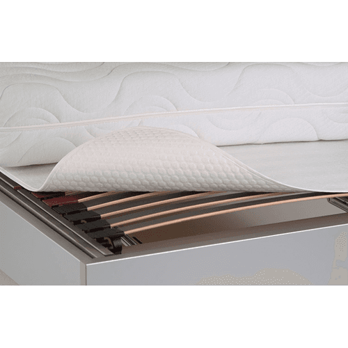 Matratzenunterlage | Eine Matratzenunterlage schützt die Unterseite der Matratze vor Schmutz und Abrieb, die durch eine Bewegung auf dem Lattenrost entstehen können. Wird die Unterseite der Matratze nicht regelmäßig gelüftet, kann sich schnell Schimmel bilden. Eine antimikrobielle Unterlage verhindert, dass sich Sporen, Bakterien und auch Staubmilben in der Matratze festsetzen. Diese Unterlagen sind besonders für Allergiker empfehlenswert. Griffige Noppen verhindern, dass die Unterlage verrutscht. |
