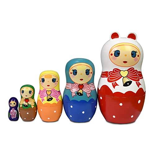 Die russische Matroschka von Toyvian weist ein kinderfreundliches Design auf und wurde aus robustem Holz hergestellt. Bei der Bemalung wurde auf den Stil Wjatskaja gesetzt, der zu den traditionellen Stilen gehört. Weiterhin handelt es sich um eine hochwertige Verarbeitung. Wir können das Produkt mit einem Lieferumfang von fünf Matroschkas für Kinder, Jugendliche und Erwachsene empfehlen.