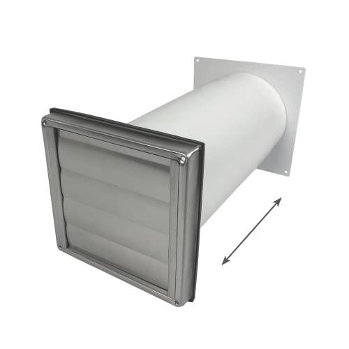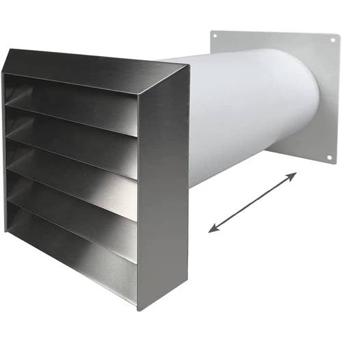 Auch die Länge des Mauerkastens variiert. Meist ist er im Maximum um die 50 Zentimeter lang und kann je nach Bedarf gekürzt werden. Außerdem gibt es Teleskop-Mauerkästen, bei denen sich das Anschluss-Rohr ineinander schieben lässt, um exakt zur Mauerdurchführung des Dunstabzugs zu passen. Mit einem Teleskop-Mauerkasten lässt sich die Rohrlänge beispielsweise flexibel zwischen 90 cm und 120 cm anpassen.