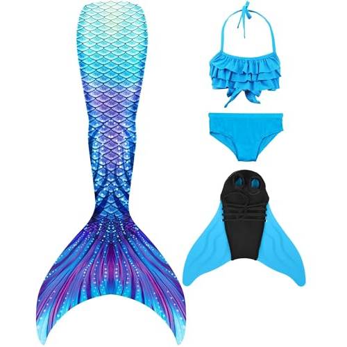 Polyester, Elasthan (Spandex) und Baumwolle sind die Materialien, die typischerweise bei der Fertigung von Bikinis, Tankinis oder Badeanzügen zum Einsatz kommen. Auch der flexible Lyra-Stoff erfreut sich gerade bei Bademode großer Beliebtheit. Diese Materialien kommen bei Kinder-Meerjungfrauen-Flossen-Sets zum Einsatz, die für das Wasser und zum Schwimmen gemacht sind. die meisten Sets bestehen aus einer Meerjungfrau-Flosse samt Bikini, manche Sets bestehen auch aus einer Meerjungfrauenflosse für Mädchen mit Badeanzug.
