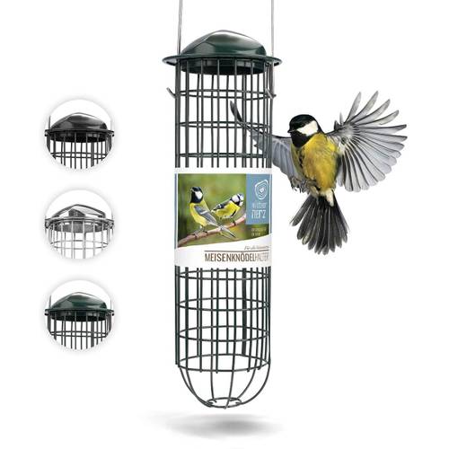 Hinweis: Grundsätzlich sind alle Meisenknödelhalter nachfüllbar. Sobald die Wildvögel die Ration verputzt haben, kann ein neuer Knödel eingelegt werden.