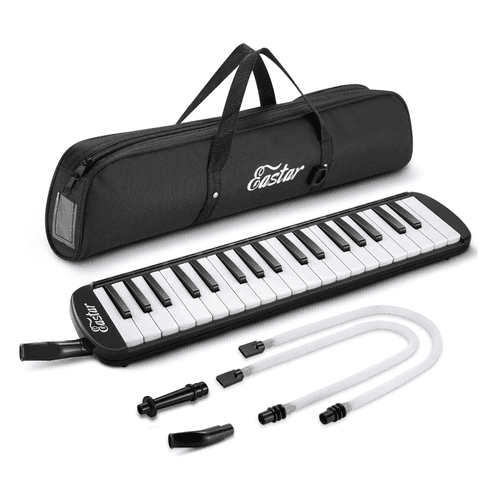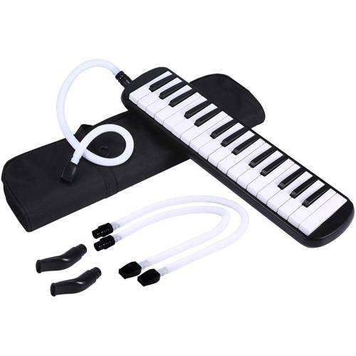 Beim zweiten verbindet ein Schlauch die Melodica mit dem Mundstück. Mit diesem ist es Ihnen möglich, das Instrument auf einem Tisch abzulegen und mit beiden Händen die Tasten zu spielen.
