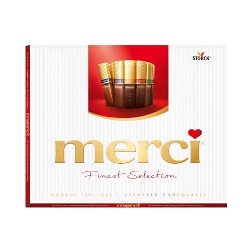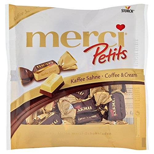 Neben diversen Nusssorten finden Sie hier auch Nougat, Vollmilch oder dunkle Schokolade. Auch in den Packungen „Merci together“ und „Merci Petits“, die in einer Großpackung verfügbar ist, finden Sie einen ansprechenden Mix verschiedener Sorten.