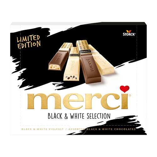 Möchten Sie Merci-Schokolade kaufen, finden Sie auch Merci-Schokolade-Sorten wie die „Merci Creme-Frucht“ mit leckerem sommerlichen Fruchtgeschmack oder die „Black & White Selection“ mit zarter weißer Schokolade. Des Weiteren bietet Merci verschiedene Packungen mit hellen oder dunklen Schokoladen an.