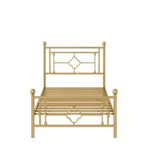 Das Symylife Metallbett in der Größe 140 x 190 cm bietet eine elegante und natürliche Schlafmöglichkeit für Ihr Schlafzimmer oder Gästezimmer. Der Bettrahmen besteht aus robustem Eisen und Metall und ist besonders langlebig. Das Bett verfügt zudem über Kopfteilhalter an beiden Seiten, um ein Verrutschen der Matratze zu verhindern. Die umweltfreundliche Metallic-Farbe schützt nicht nur die Oberfläche des Bettes vor Rost, sondern verlängert auch die Lebensdauer des Bettrahmens. Mit einer Bodenfreiheit von 33 cm bietet das Bett ausreichend Stauraum unter dem Bett für Boxen, Bücher, Kleidung und mehr. Zudem gefällt uns das elegante, weinglasförmiges Kopfteil. Auch die Montage des Bettes ist einfach und erfordert keine zusätzlichen Werkzeuge. Das Symylife Metallbett kombiniert Funktionalität, Robustheit und ein ansprechendes Design und ist eine ideale Wahl für Ihr Zuhause.
