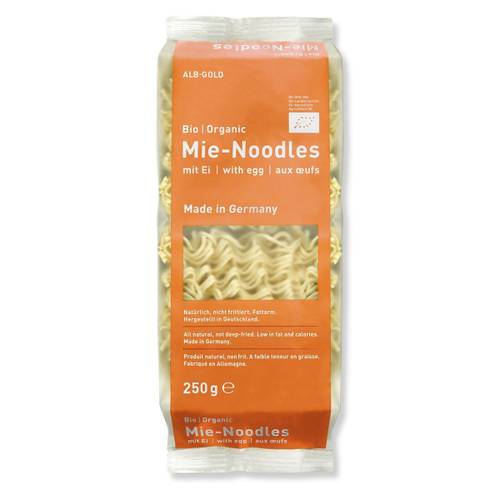 Wenn Sie sich Mie-Nudeln kaufen möchten, empfehlen wir Ihnen Bio-Mie-Nudeln zu wählen. Bei diesen können Sie sicher sein, dass alle Zutaten für die Mie-Nudeln aus ökologischem Anbau oder, falls es sich um Mie-Nudeln mit Ei handelt, die Eier von Hühnern aus tierfreundlicher Haltung stammen.