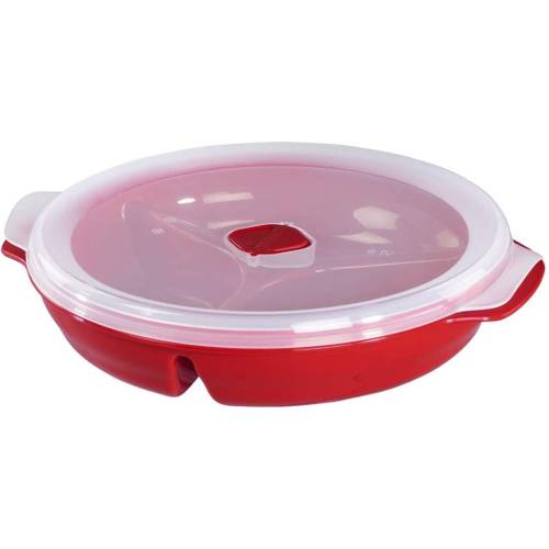 Mikrowellen Teller sehen im Prinzip aus wie herkömmliche tiefe Teller und weisen meist einen Durchmesser zwischen 20 – 25 cm auf. Oft besitzen sie verschiedene Fächer auf denen Sie das Essen anrichten können – meistens 3 Stück. Das ist natürlich praktisch, wenn man ganze Gerichte einfrieren, auftauen oder erhitzen will. Denn so können beispielsweise Fleisch und Beilagen voneinander getrennt werden, was sie ihren jeweils eigenen Geschmack behalten lässt. Offensichtlich eignen sich solche Behälter aber nicht zur Aufbewahrung von Suppe oder anderen tendenziell weichen oder flüssigen Speisen. Dafür sind solch portionierte Teller ideal zum Vorkochen für die Kinder oder die Großeltern. Für den Transport eignen sie sich nur bedingt. Übrigens ist nicht jeder unterteilte Thermoteller für das Erwärmen von Speisen geeignet.