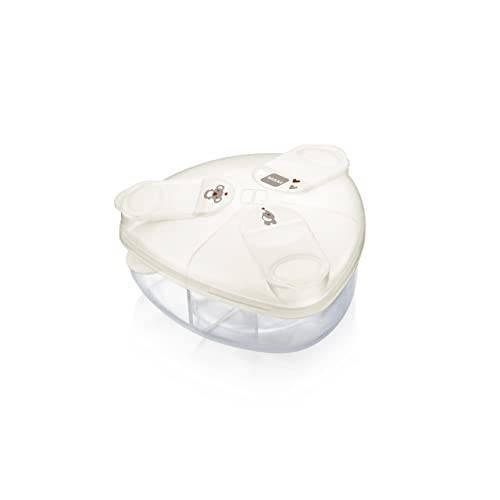Einige Anbieter verkaufen Milchpulver-Portionierer im Doppelpack. Oder Sie kaufen von einem Hersteller zwei Milchpulver-Portionierer. Die einzelnen Portionskammern lassen sich kombinieren, so dass Sie zwei kleinere Modelle zu einem großen Milchpulver-Spender zusammenfügen können – ohne den Ausgießer doppelt mitnehmen zu müssen. Wenn Sie zwei Milchpulver-Portionierer in unterschiedlichen Farben erwerben, können Sie so sogar Ihren ganz individuellen Farbmix zusammenstellen.