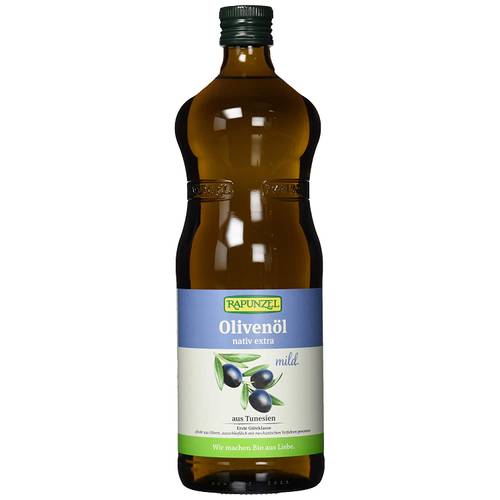 Hier wird uns das milde Olivenöl von Rapunzel präsentiert. Es stammt aus Tunesien und wird dort aus sonnengereiften Bio-Oliven direkt nach der Ernte kaltgepresst.