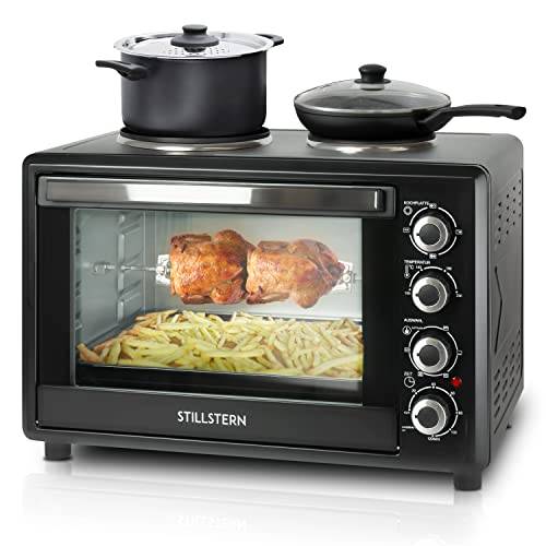 Ein kleiner Ofen wie der Stillstern-Backofen mit 45 Litern eignet sich also nicht nur zum Zubereiten von Pizzen, Fertiggerichten oder Pommes. Solche Geräte (auch z. B. Steinborg, Klarstein) sind problemlos für alle Ofengerichte, Brot und Gebäck sowie für Grillgerichte geeignet.