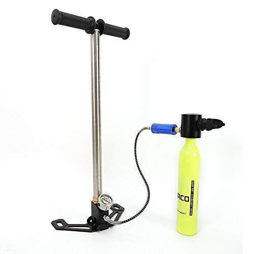 Wenn Sie sich entscheiden, eine Mini-Tauchflasche zu kaufen, empfehlen wir Ihnen eine Flasche mit einem Fassungsvermögen von einem Liter. Mit einem Liter können Sie zwischen 15 und 20 Minuten unter Wasser bleiben. Je weniger Sauerstoff Sie brauchen, desto länger können Sie unter Wasser bleiben. Tests im Internet haben gezeigt, dass bei einigen Mini-Tauchflaschen eine Handpumpe mitgeliefert wird. Diese Pumpe können Sie zum Aufpumpen der Mini-Tauchflasche verwenden.