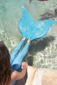 Eine Meerjungfrau-Flosse ist im Grunde eine Monoflosse, die speziell geformt ist oder mit einem Überzug zum Fischschwanz erweitert werden kann.