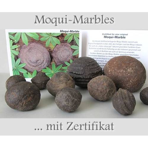 Bei Moqui-Marbles handelt es sich um Steine, die aus einer Eisen-Verbindung bestehen. Man nennt sie auch lebende Steine, da Moqui-Marbles sozusagen aus der Erde geboren werden. Wie Vergleiche von Moqui-Marbles zeigen, treten diese aus Sandsteinschichten an die Oberfläche.