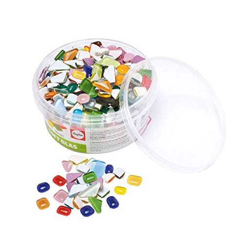 Auch Geschirr, Tische oder Stühle können mit einem einzigartigen Mosaikmuster verziert werden. Außerdem können Bastelsteine zum Aufkleben Dosen, Blumenübertöpfe, Bilderrahmen, Vasen, Windlichter, Tabletts, Tonfiguren oder Türrahmen verschönern.