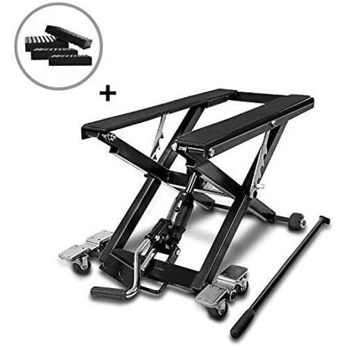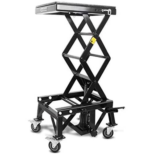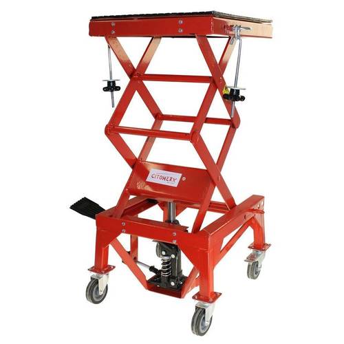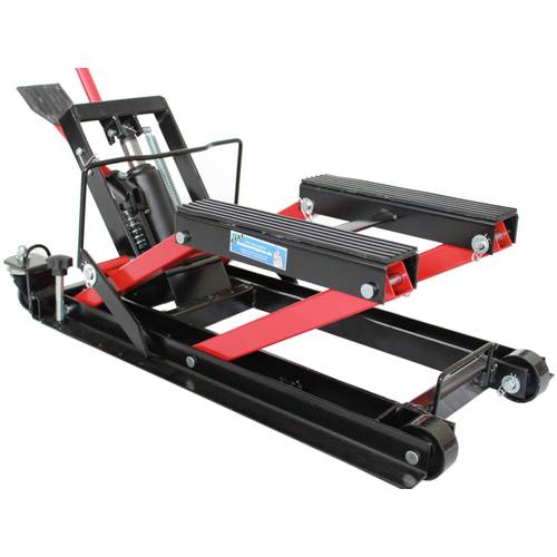 Besonders eine Plattform, die eine Breite von 50 cm überschreitet, hat sowohl das Motorrad mit breiten Zylindern Platz als auch das Werkzeug, das Sie zur Reparatur Ihrer Maschine immer griffbereit haben sollten.
