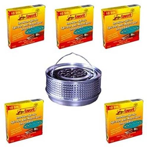 Dekorativer und vor Wind geschützt sind Mückenspiralen im Metalltopf oder Tongefäß. Die Spiralen werden zum Glimmen in das Gefäß gelegt und mit einem Deckel verschlossen. Der Rauch quillt durch die Löcher in dem Deckel. Achten Sie darauf, dass die Löcher groß genug sind, damit die Spirale ausreichend Sauerstoff erhält. Die Schale fängt auch die zurückbleibende Asche auf. Der Metalltopf kann bei Feuchtigkeit anfangen zu rosten, ist jedoch stoßfest. Wir raten, nach Gebrauch die Gefäße und Spiralen abkühlen zu lassen und trocken zu lagern.