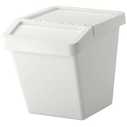 In unseren Augen ist die schlichte Schwarz-Weiß-Optik dieses IKEA-Mülleimers angenehm zurückhaltend.
