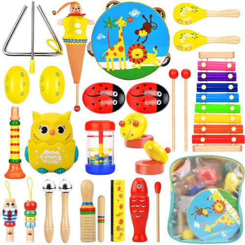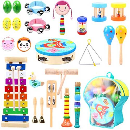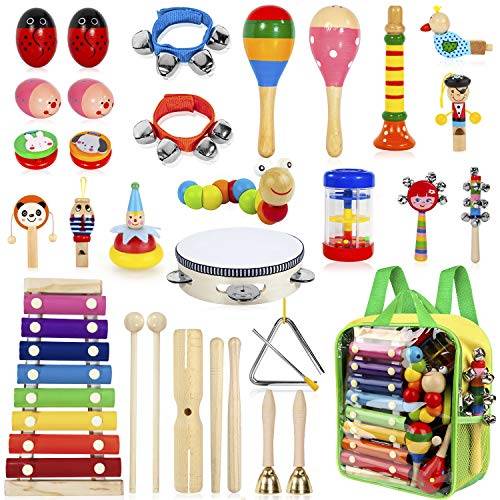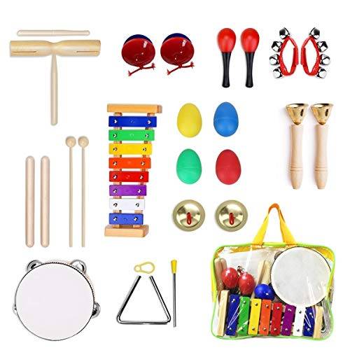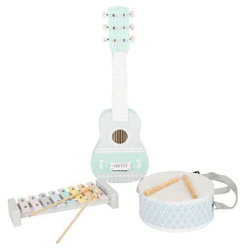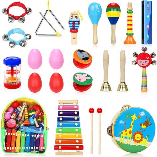 Das Spielen mit Musikinstrumenten macht bereits Babys großen Spaß. Obwohl man Kleinkinder mit Musikinstrumenten-Sets nicht unbeaufsichtigt lassen sollte, können diese trotzdem schon große Freude am Ausprobieren der unterschiedlichen Instrumente wie dem Tamburin, der Triangel oder dem Xylophon haben.