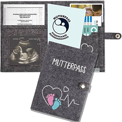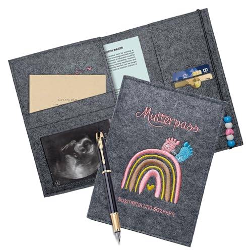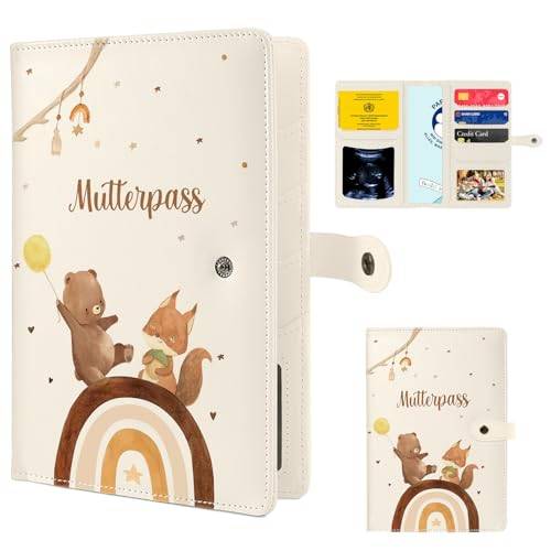 Weiterhin finden sich Hüllen, die mit süßen Motiven versehen sind. So zieren Mutterpasshüllen Regenbögen, Störche oder Babyfüße. Auch Sprüche finden sich auf Mutterpasshüllen, z. B. „kleines Wunder“ oder „50 % Mama 50 % Papa“. Wenn Ihnen keines der erhältlichen Motive zusagt oder Sie noch nach einem Geschenk für eine schwangere Freundin suchen, empfehlen wir eine personalisierte Mutterpasshülle.