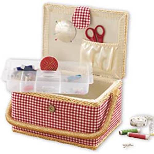 Es gibt einen Nähkasten mit Inhalt, aber auch ohne, wie einige Online-Tests zu Nähkästchen zeigten. Ist der Nähkorb groß, kann er über 183 Teile beinhalten. Wenn der Nähkorb mit Inhalt kleiner ist, eher 35 bis 70 Teile. In der Regel befinden sich in einem kleinen oder großen Nähkasten immer eine Schere, Nähnadeln, Stecknadeln, ein Fingerhut und viele verschiedene Fäden in allen möglichen Farben. Meistens sind dort zwischen 12 und 40 Faden-Farben beinhaltet.